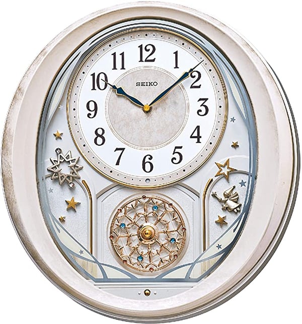 Seiko Wall Clock Twinkle and Magic Bright Star Melodies in Motion Swarovski Crystal Ivory QXM370PRH Very well made.