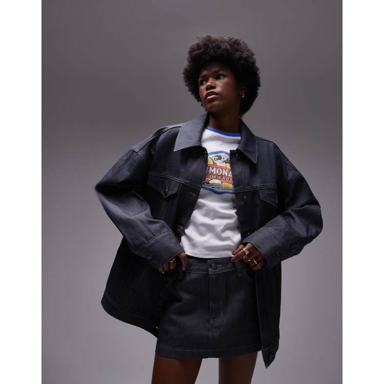 Topshop Shrunken Denim Jacket in Deep Vintage Blue Part of A Set Very well made.