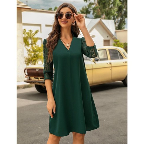 Tunic Dress for Women 3 4 Sleeve Shirt Dress Sexy Elegant Lace Shift Mini Dress Green XL Very well made.