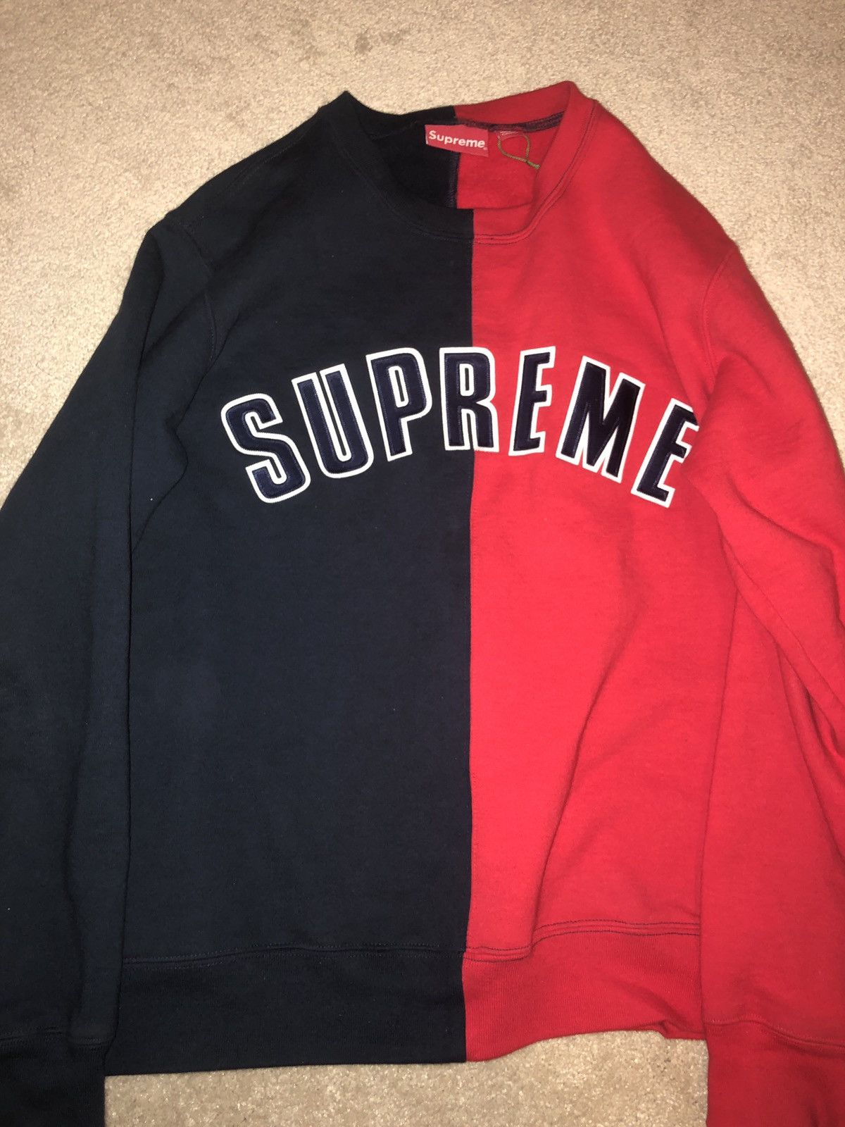 Supreme FW18 Split Crewneck Sweatshirt in Navy Red Tops Very well made.