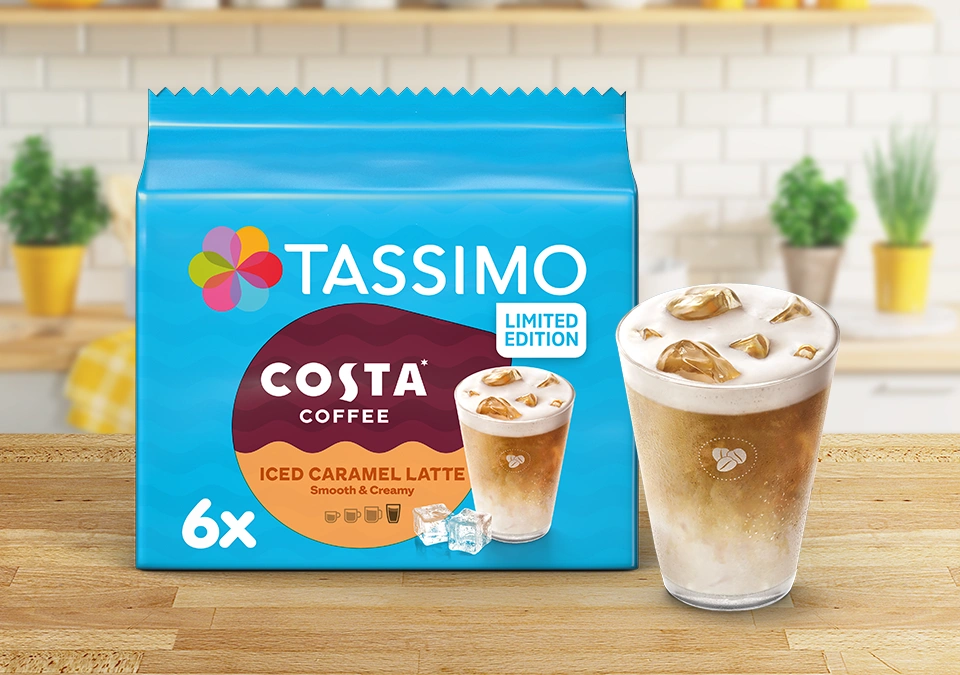 How to create your own Caramel Iced Latte TASSIMO Costa Caramel Iced Latte pods Very well made.
