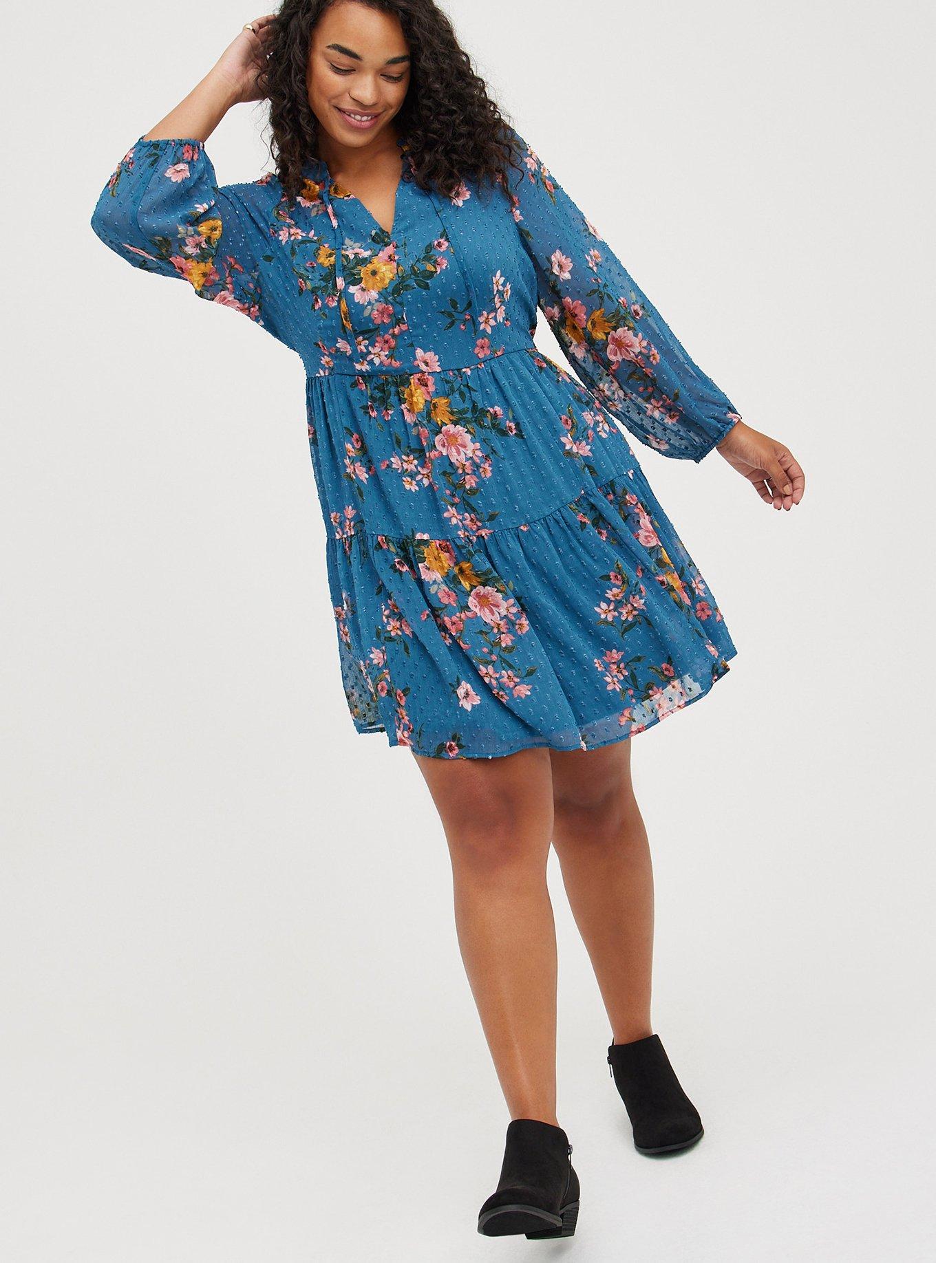 Plus Size Tea Length Chiffon Pleated Shark Bite Dress Torrid Very well made.