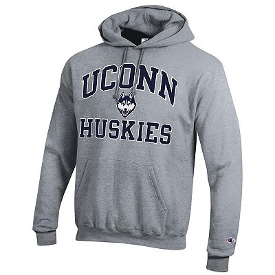 Men s Champion Gray UConn Huskies Alumni Logo Arch Pullover Sweatshirt Very well made.