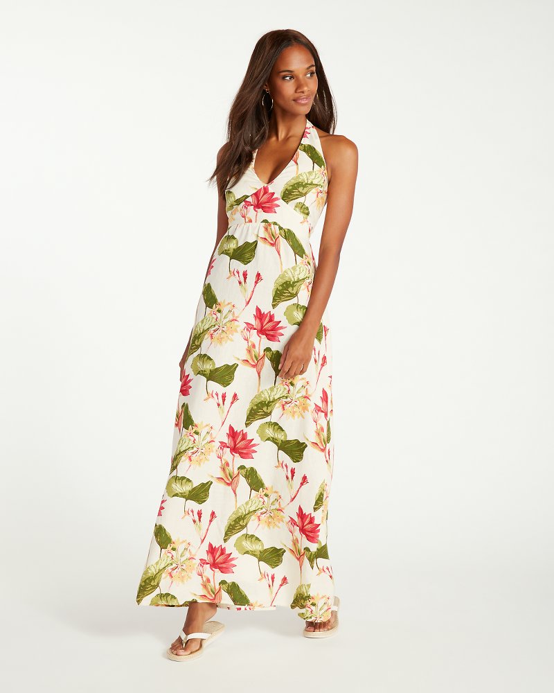 Tropical Lilies Linen Halter Dress Very well made.