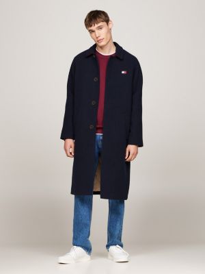 Longline Coat With Wool Blue Tommy Hilfiger Very well made.