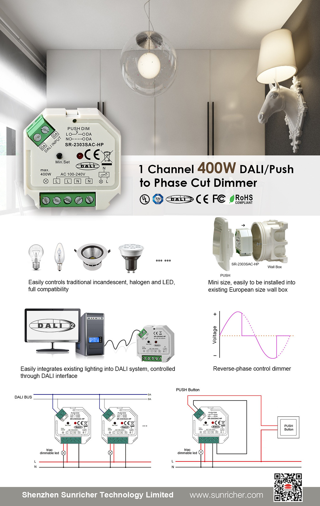 Sunricher DALI Phase Dimmer Triac DALI DT6 400W Output Very well made.