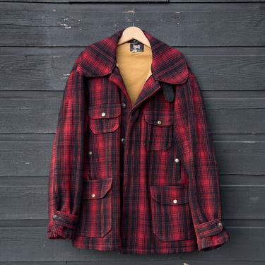 40s 50s Vintage Woolrich Coat Red and Black Mackinaw Plaid Surf and the City Orcas WA Very well made.