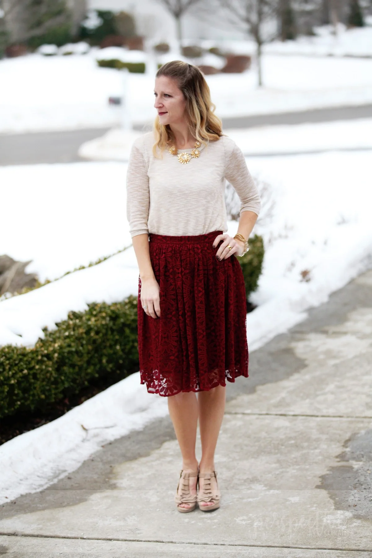 Perspective by CCMcAfee Wine Lace WEARING Very well made.