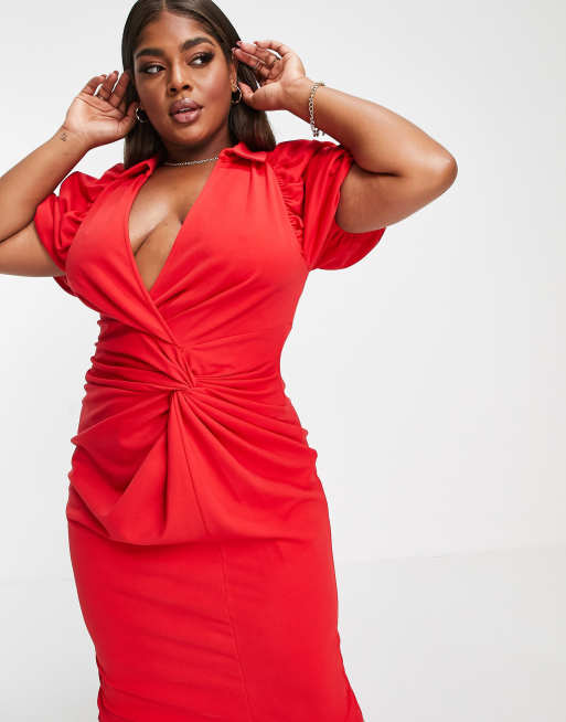 ASOS DESIGN Curve Robe chemise portefeuille mi longue avec n ud Rouge ASOS Very well made.