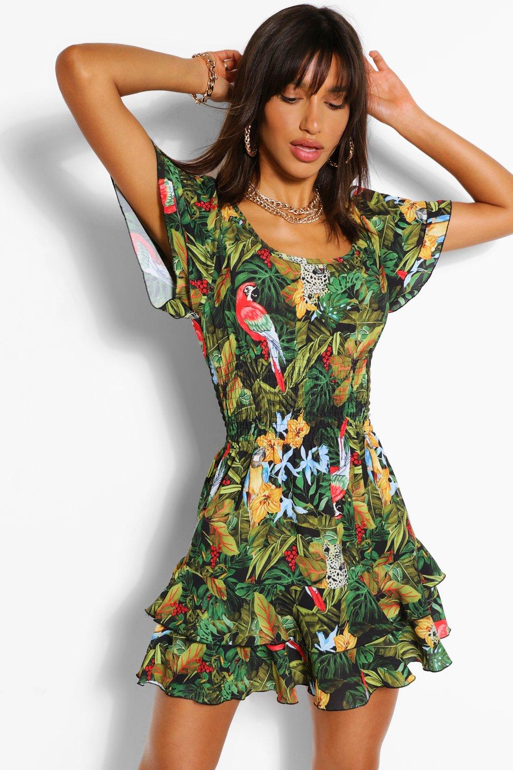 Robe courte froncee a la taille imprime jungle boohoo FR Very well made.