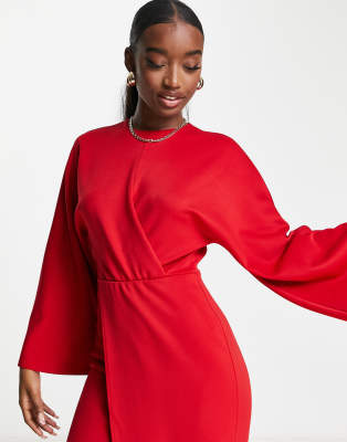 ASOS DESIGN Robe longue moulante asymetrique a detail plisse Rouge ASOS Very well made.